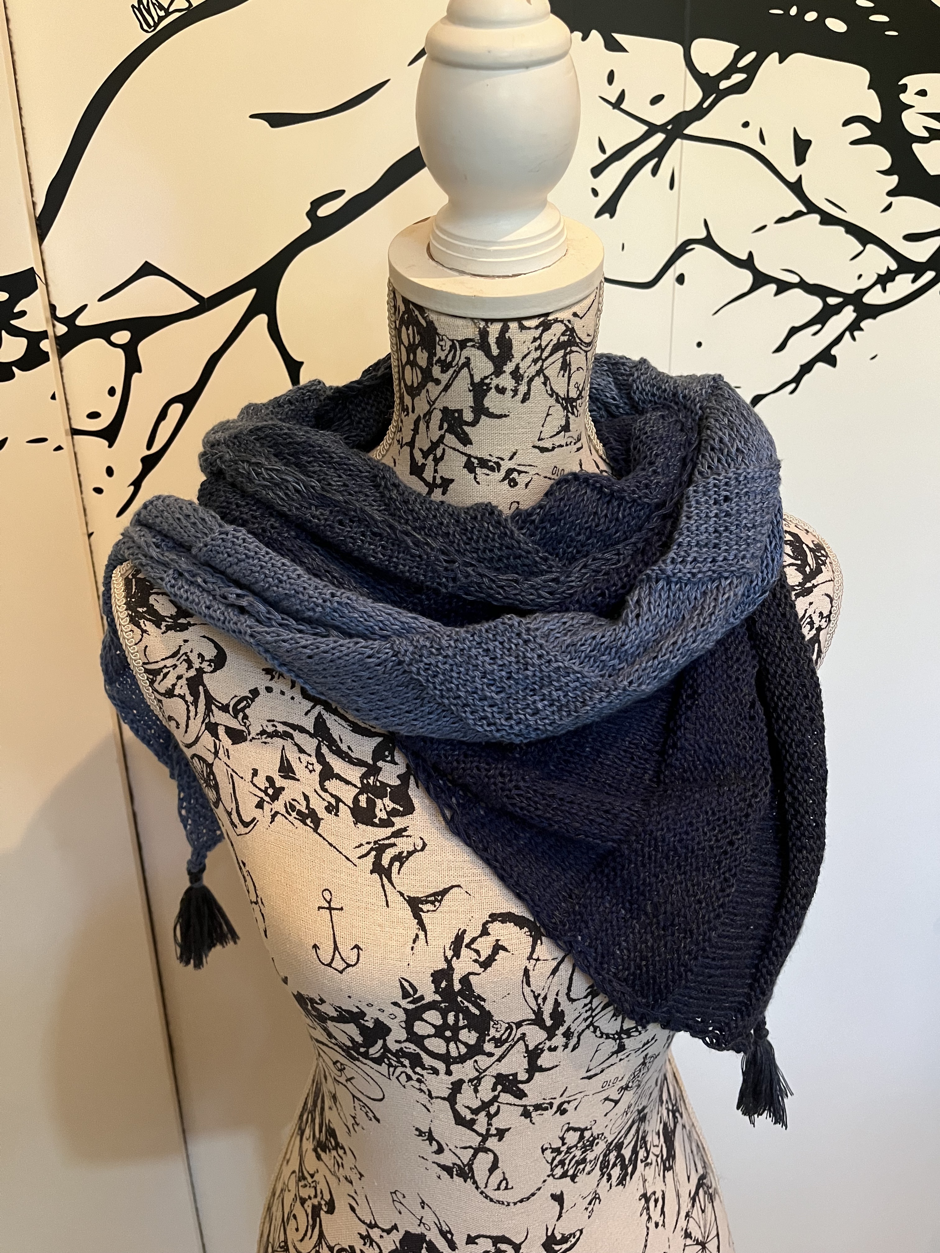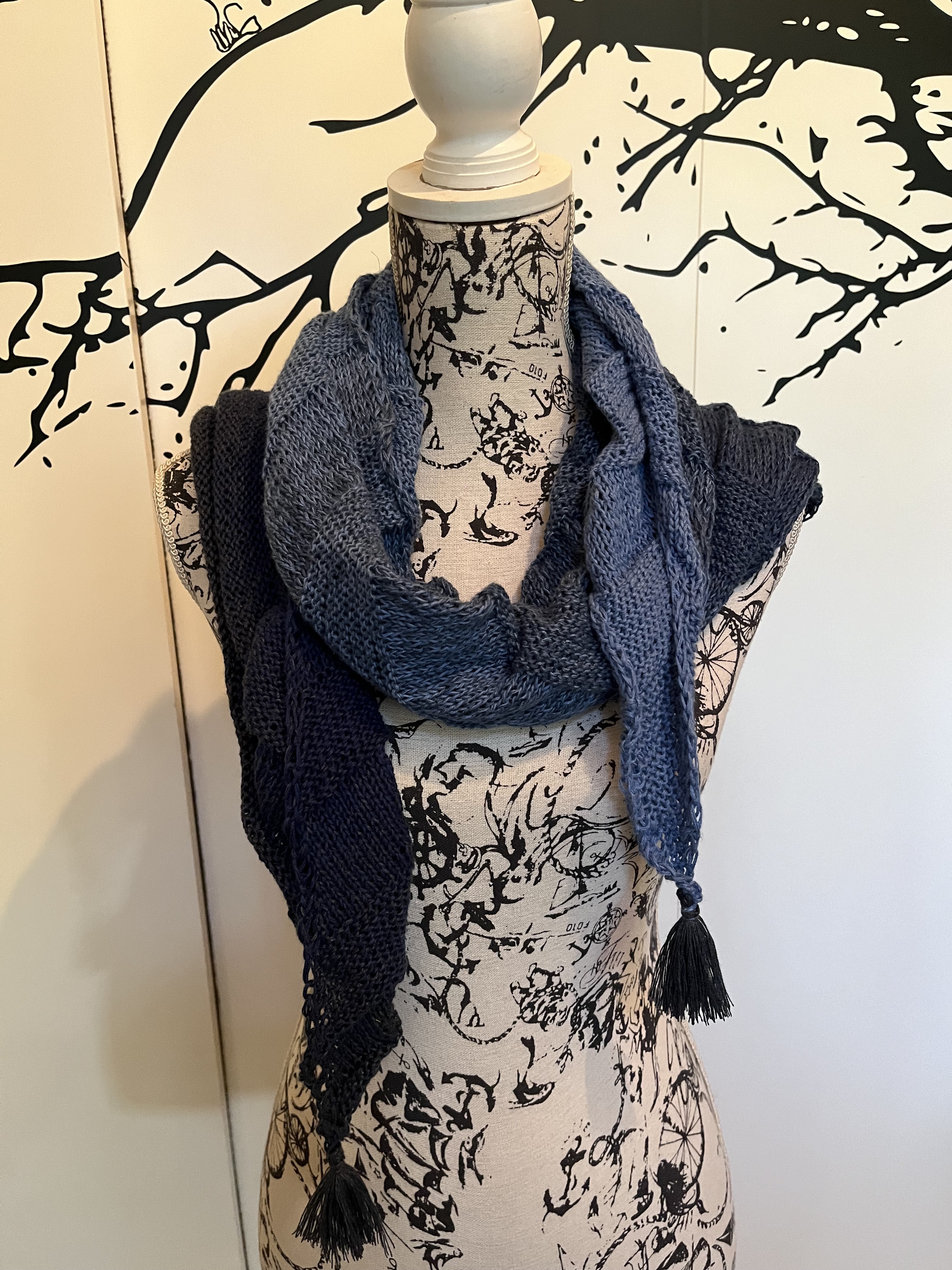 Das Tuch habe ich aus einem Bobbel gestrickt