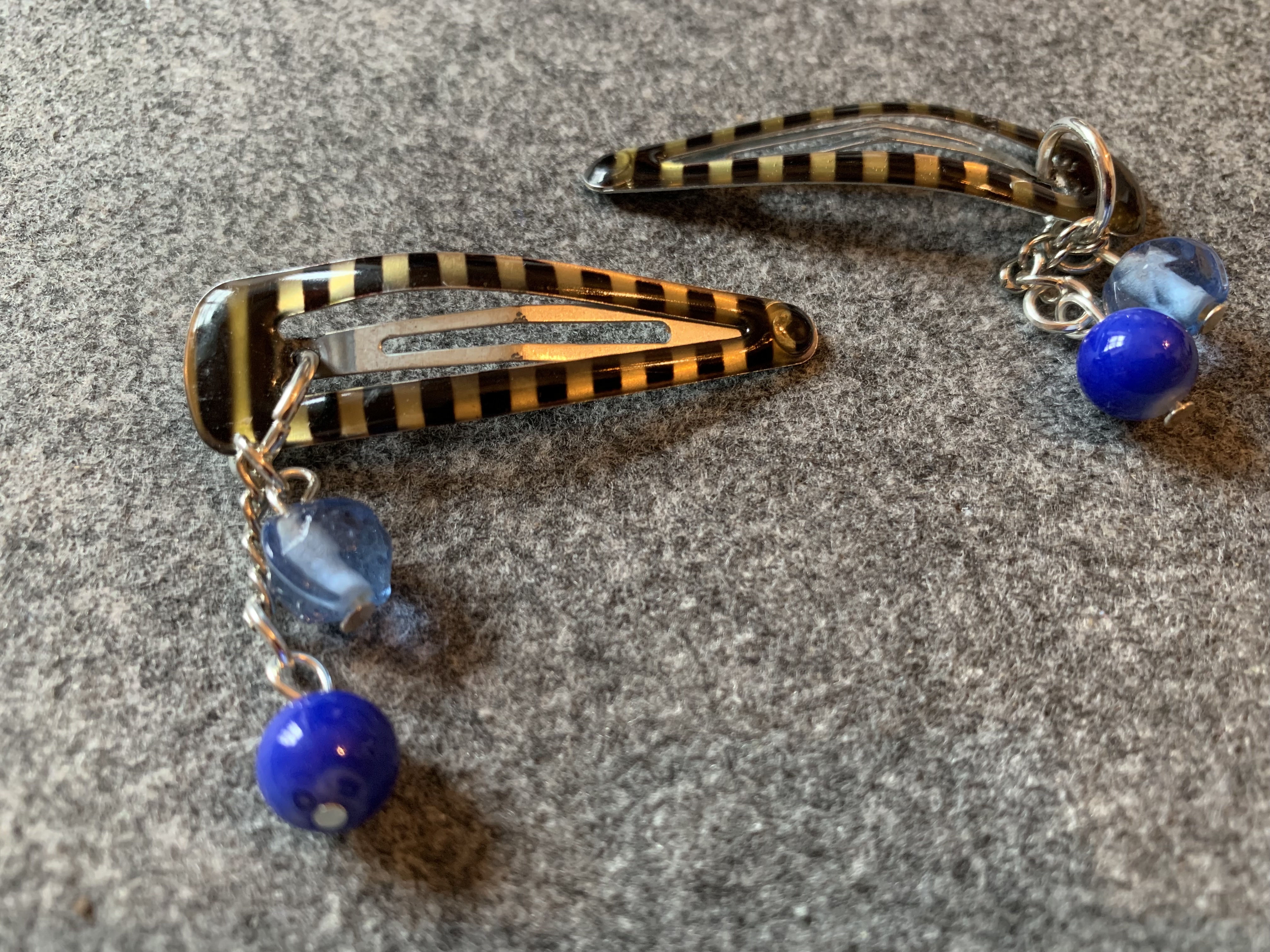Diese kleinen Haarspangen habe mit 1-2 Perlen in verschiedenen Farben aufgepeppt.