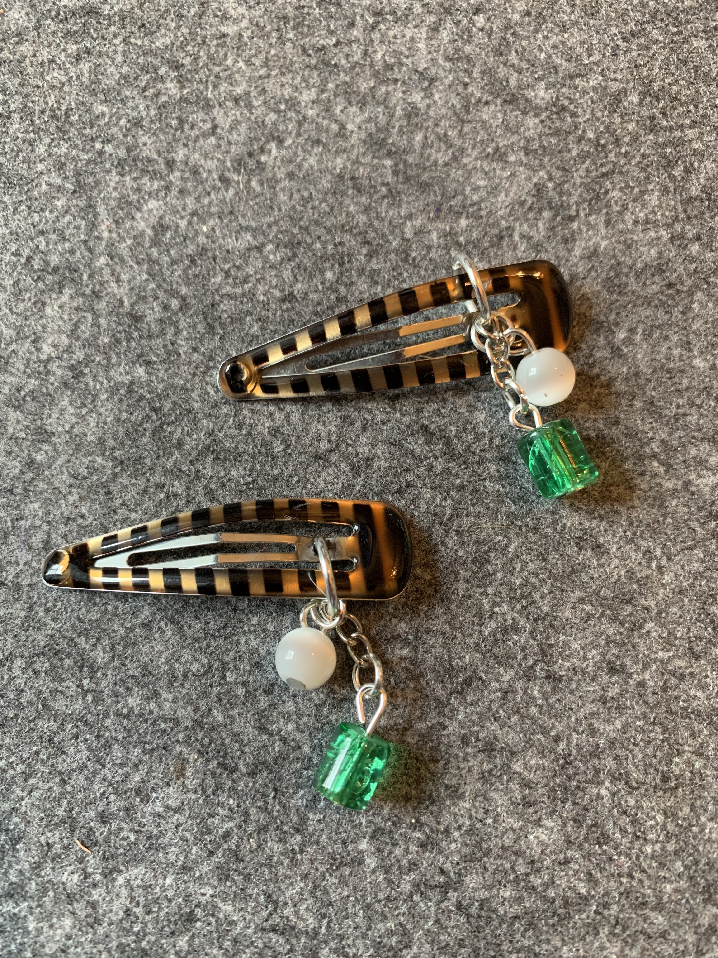 Diese kleinen Haarspangen habe mit 1-2 Perlen in verschiedenen Farben aufgepeppt.