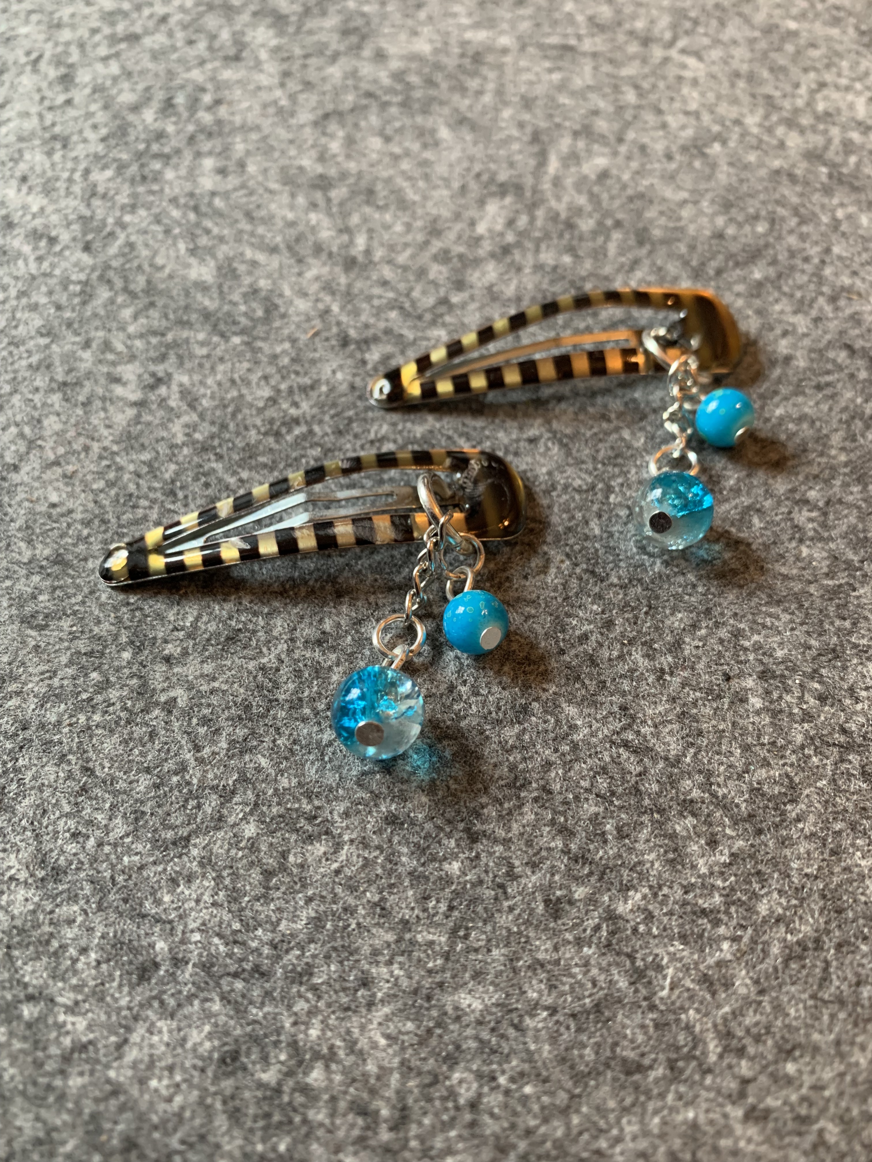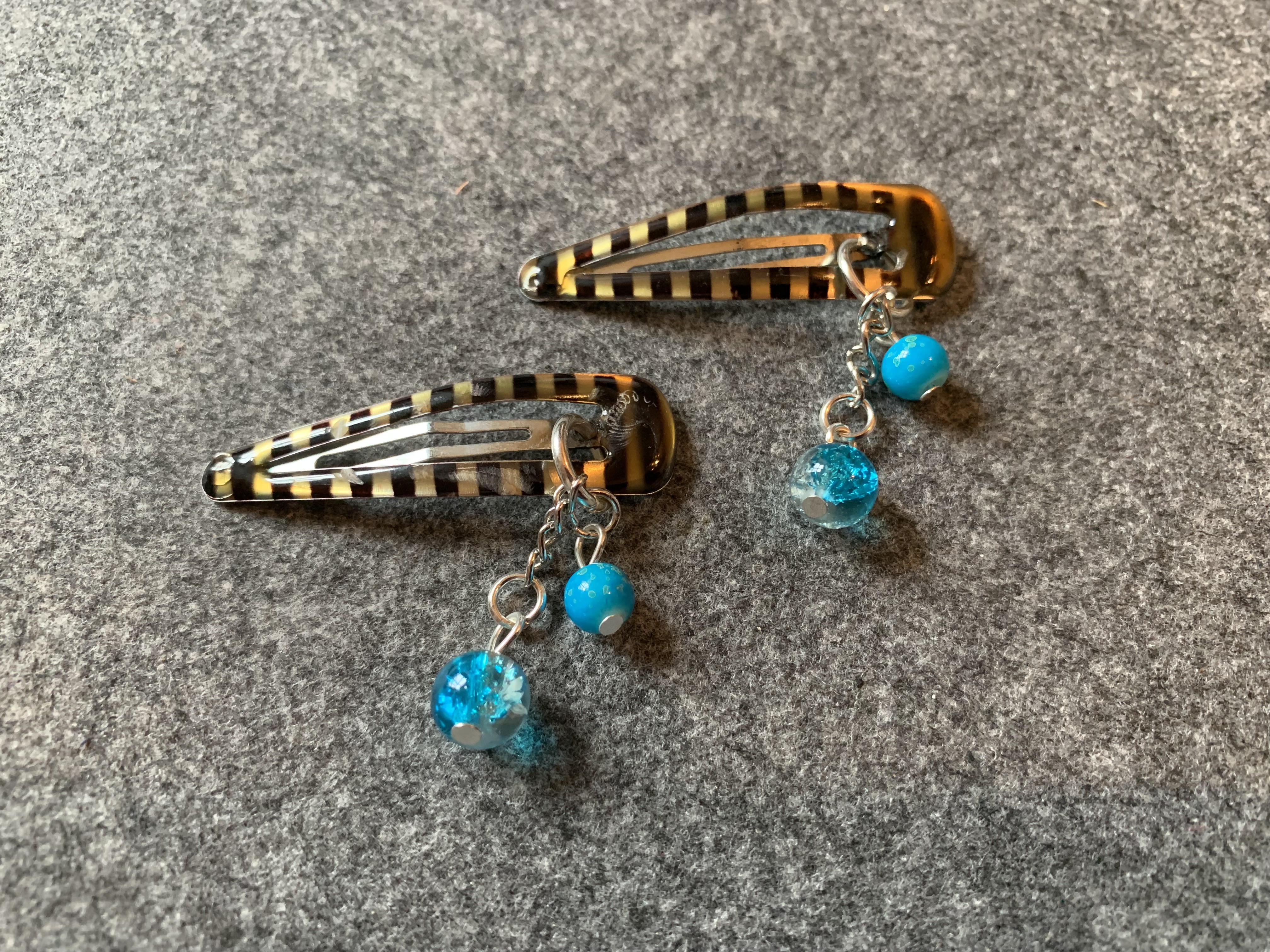 Diese kleinen Haarspangen habe mit 1-2 Perlen in verschiedenen Farben aufgepeppt.