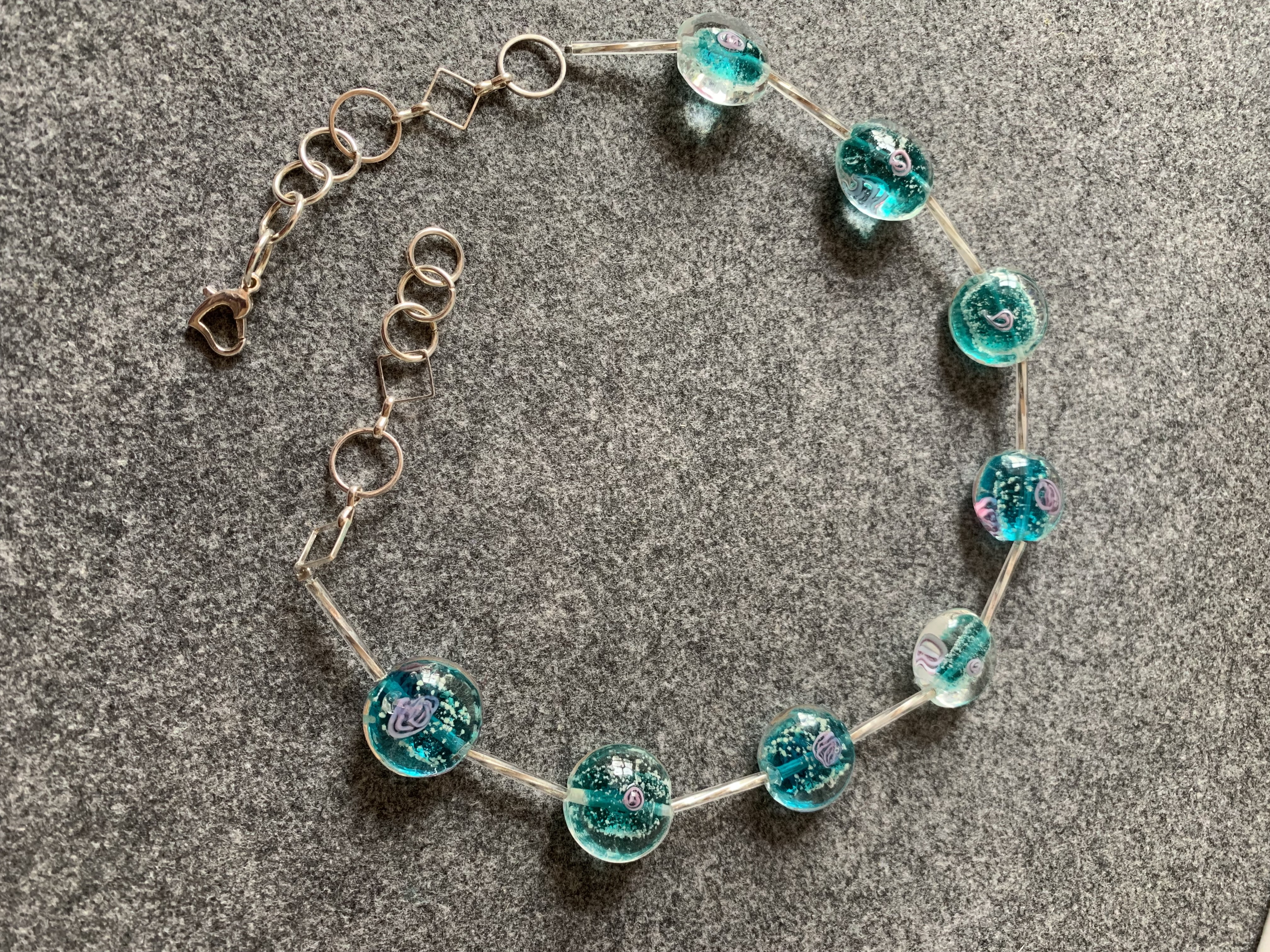 Diese Kette hat wunderschöne 8 Glasperlen.