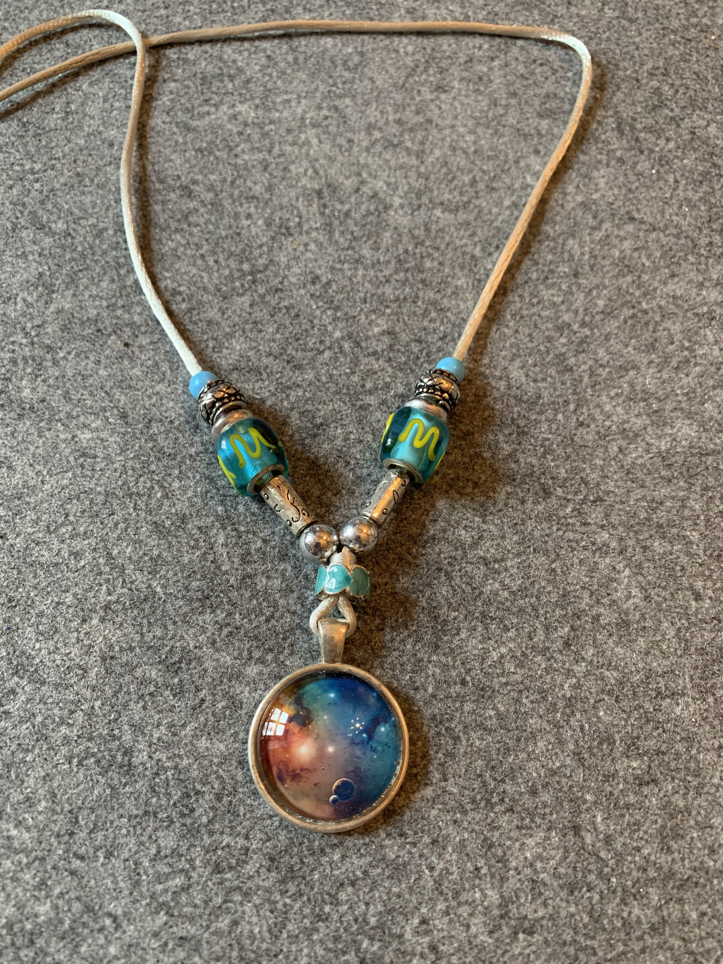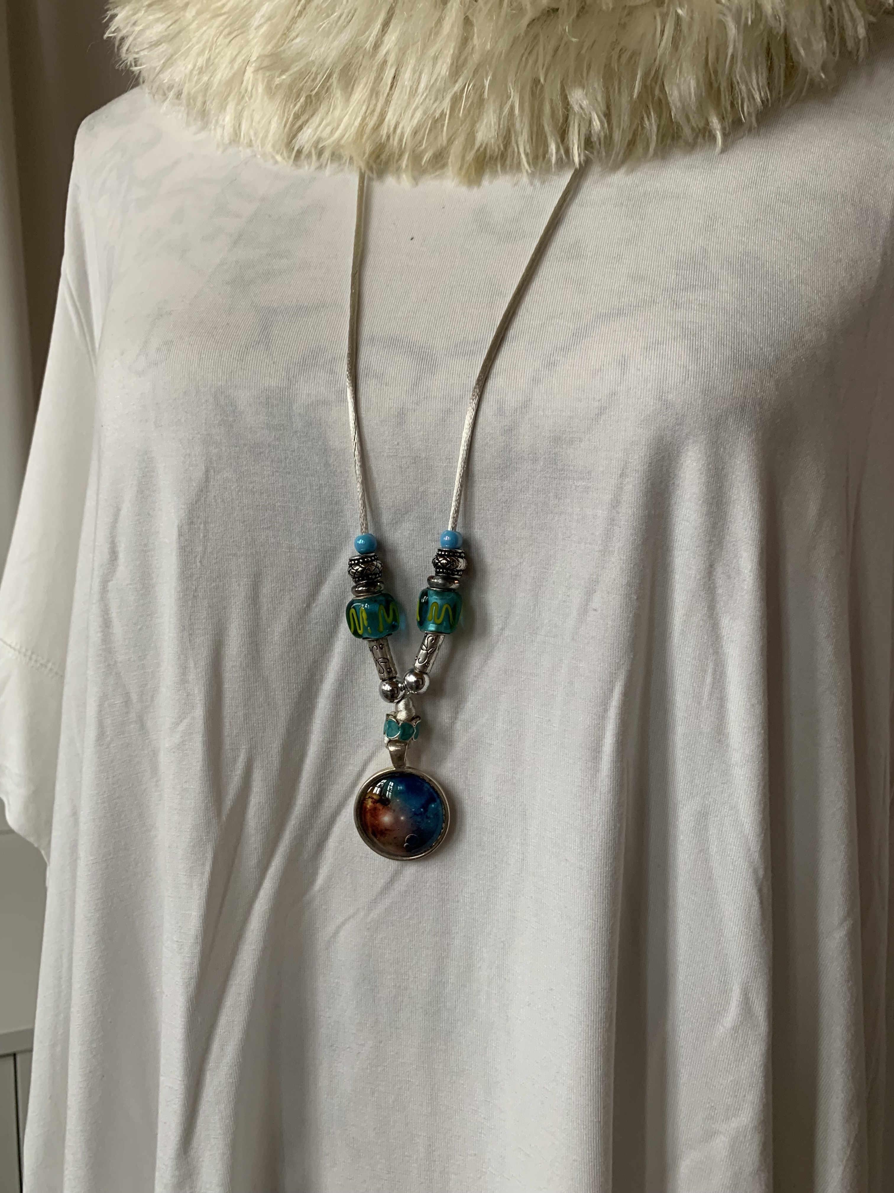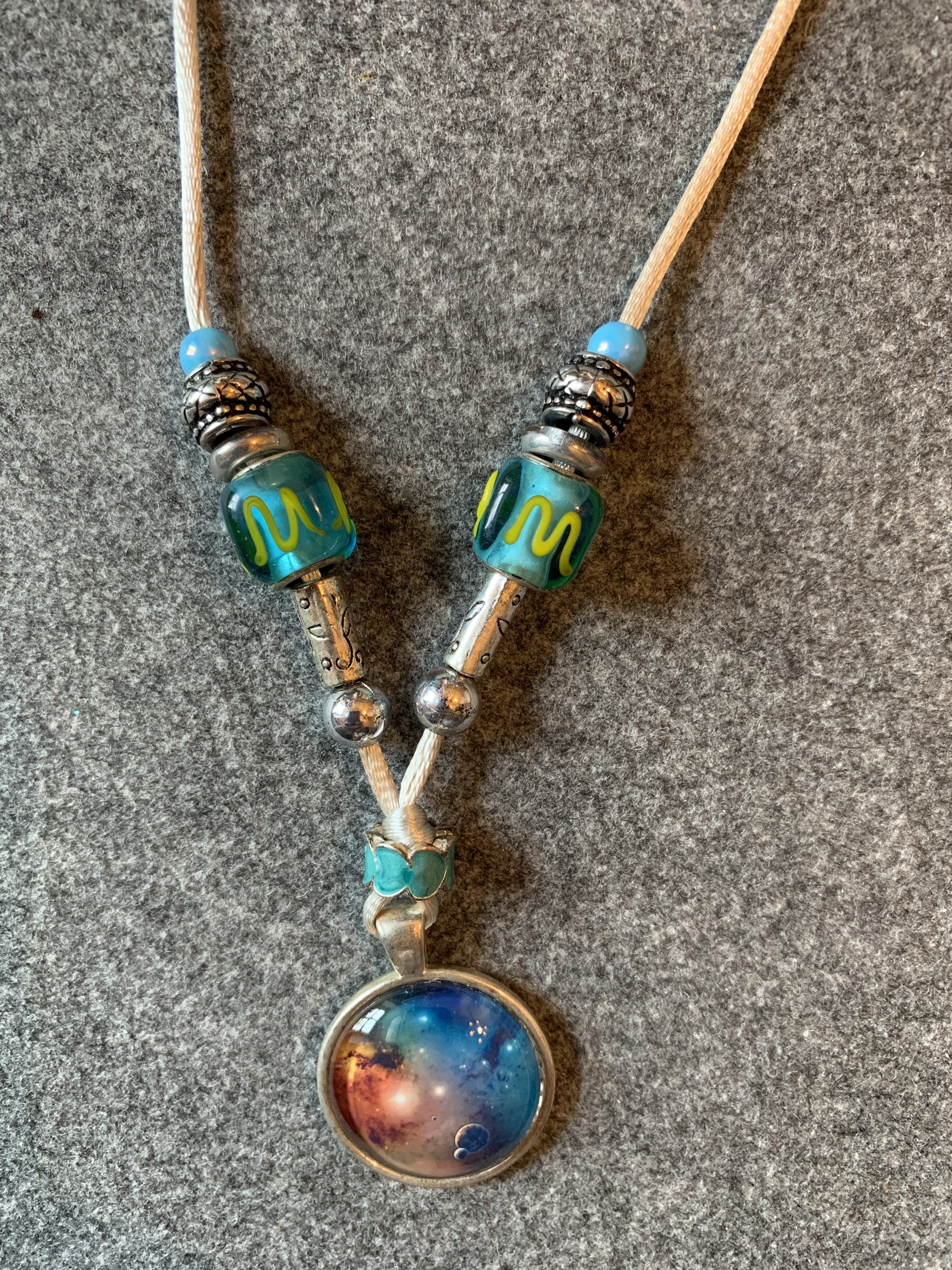 Mobile Preview: Kette türkis, hellblau (Planeten)