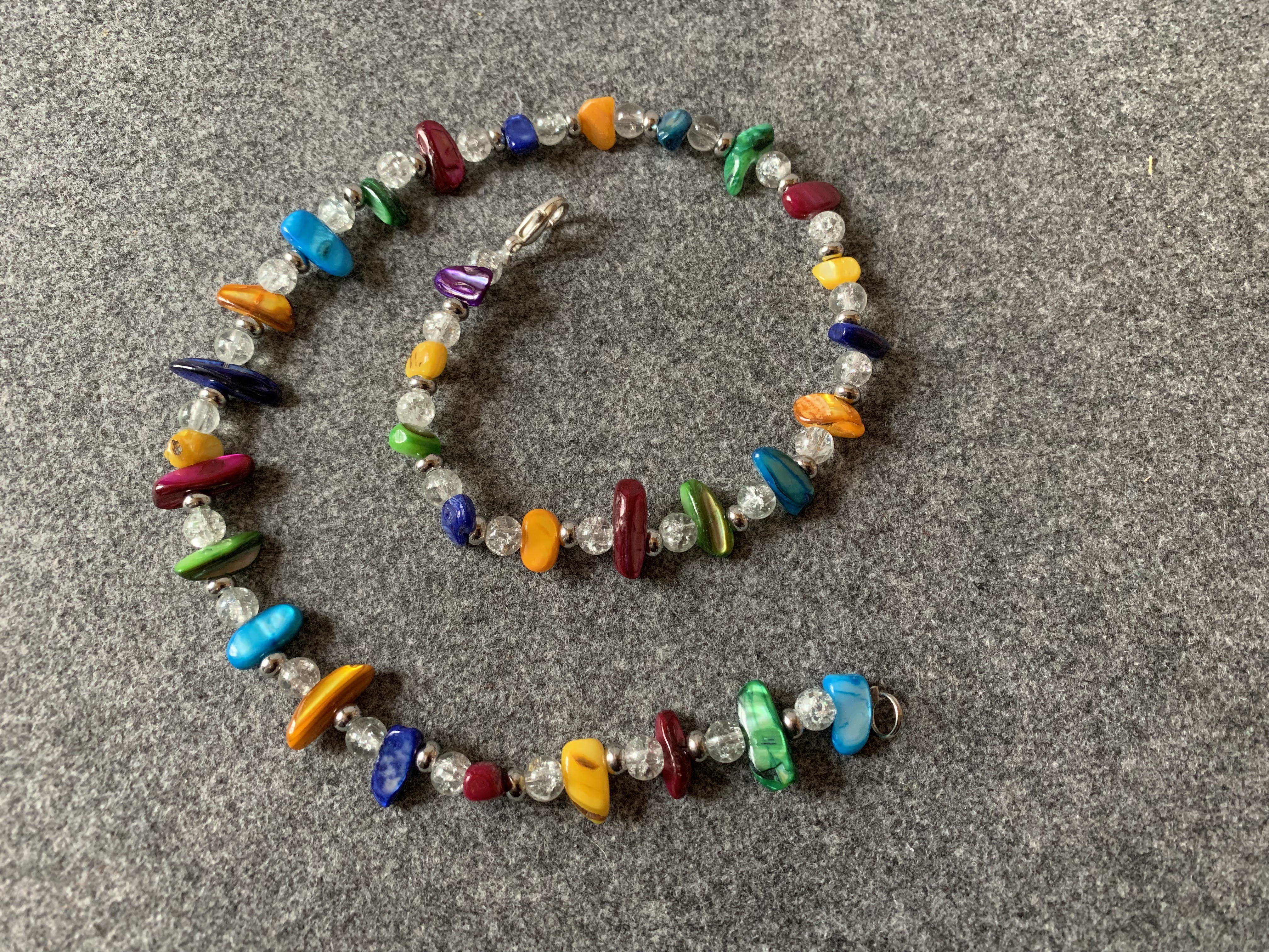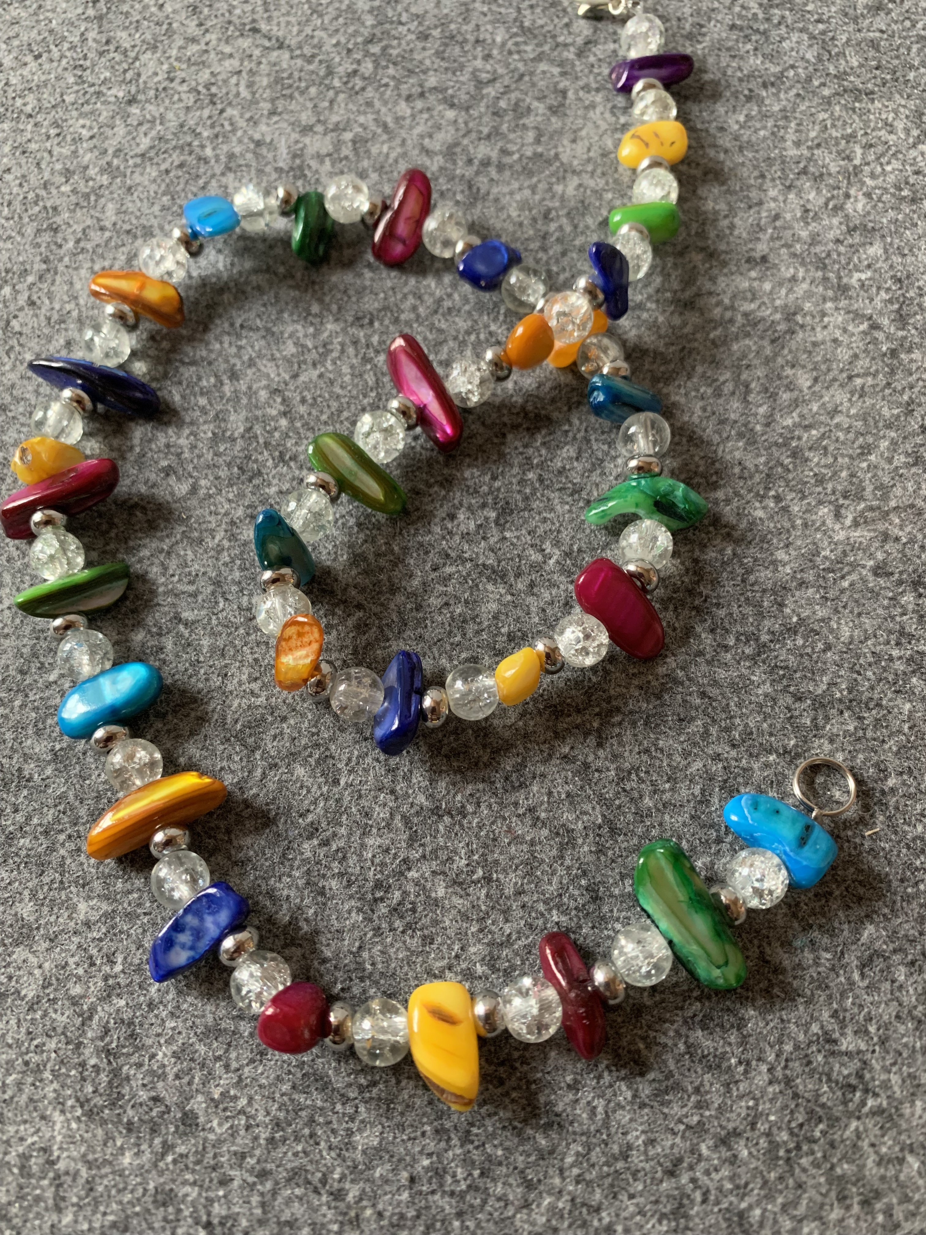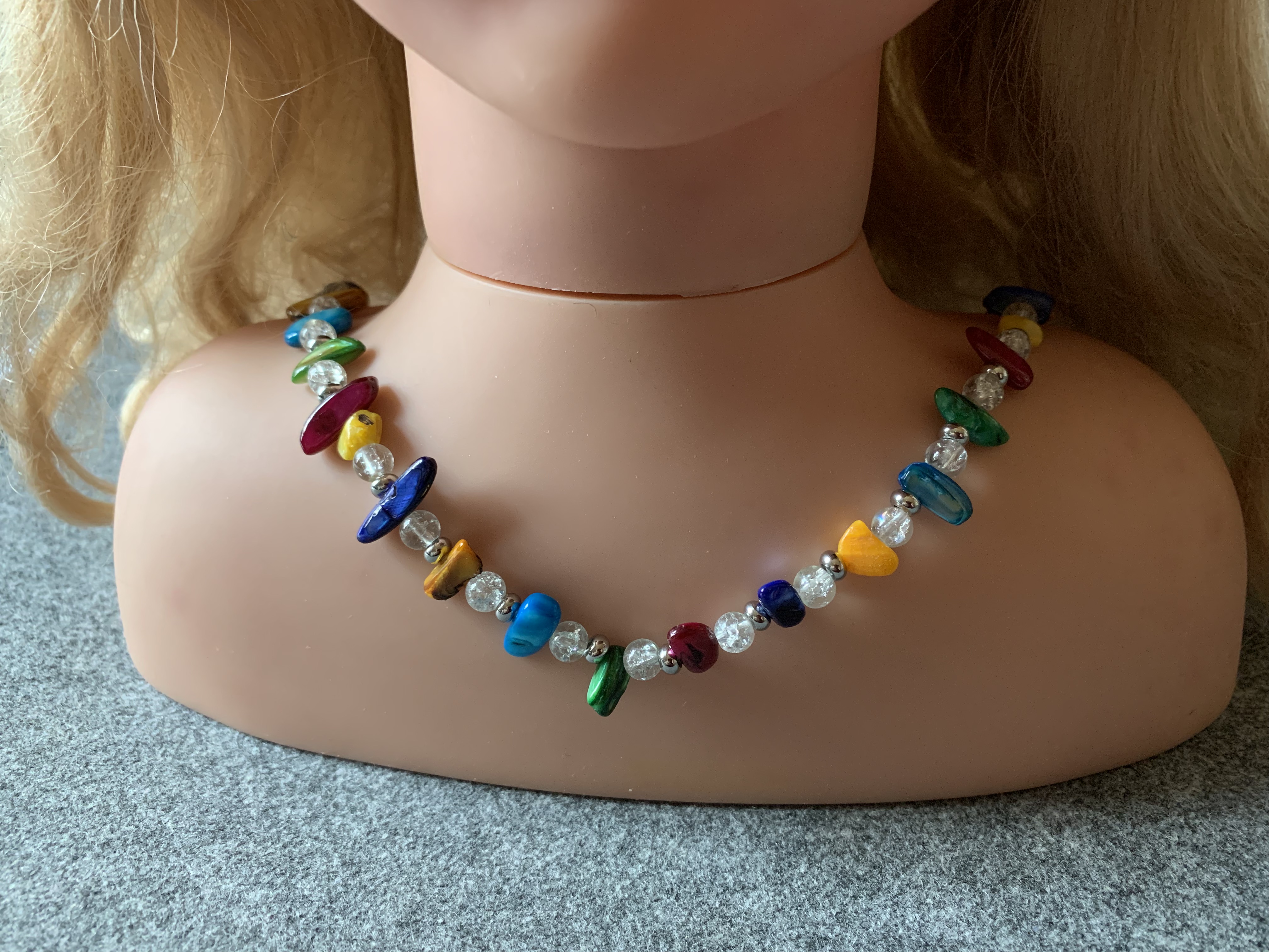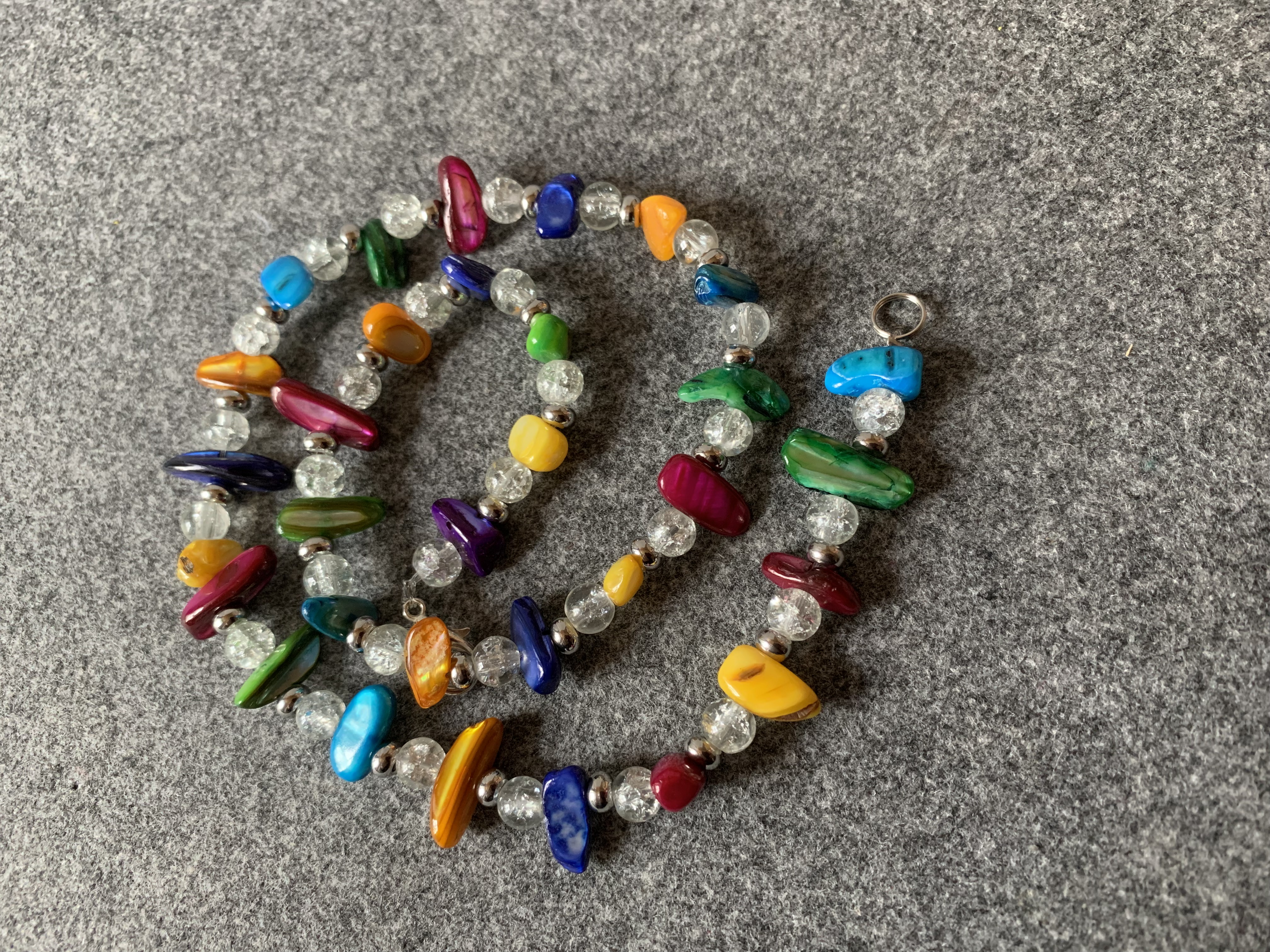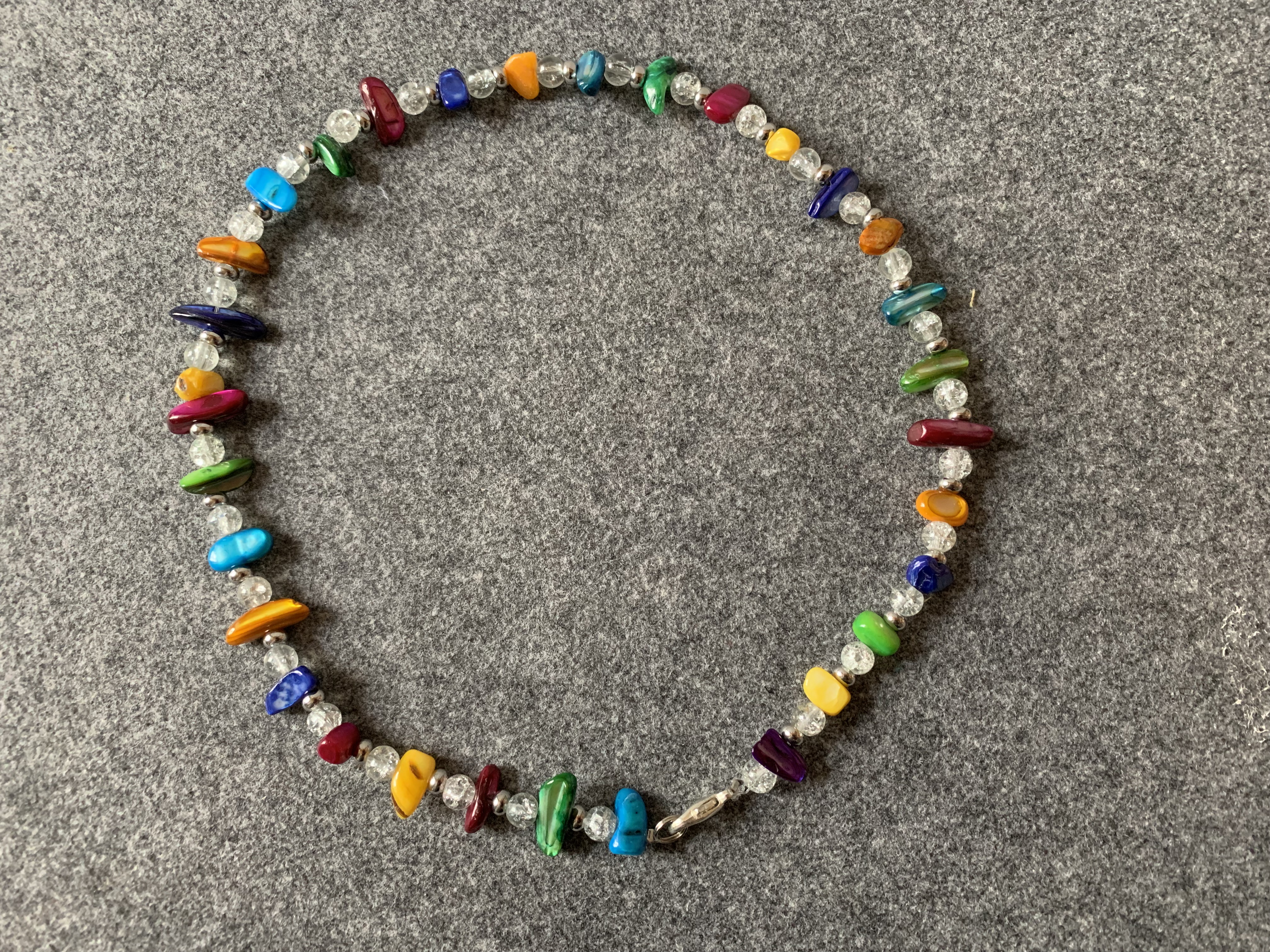 Diese Kette hat wunderschöne bunte Glasperlen und Kunststoffperlen