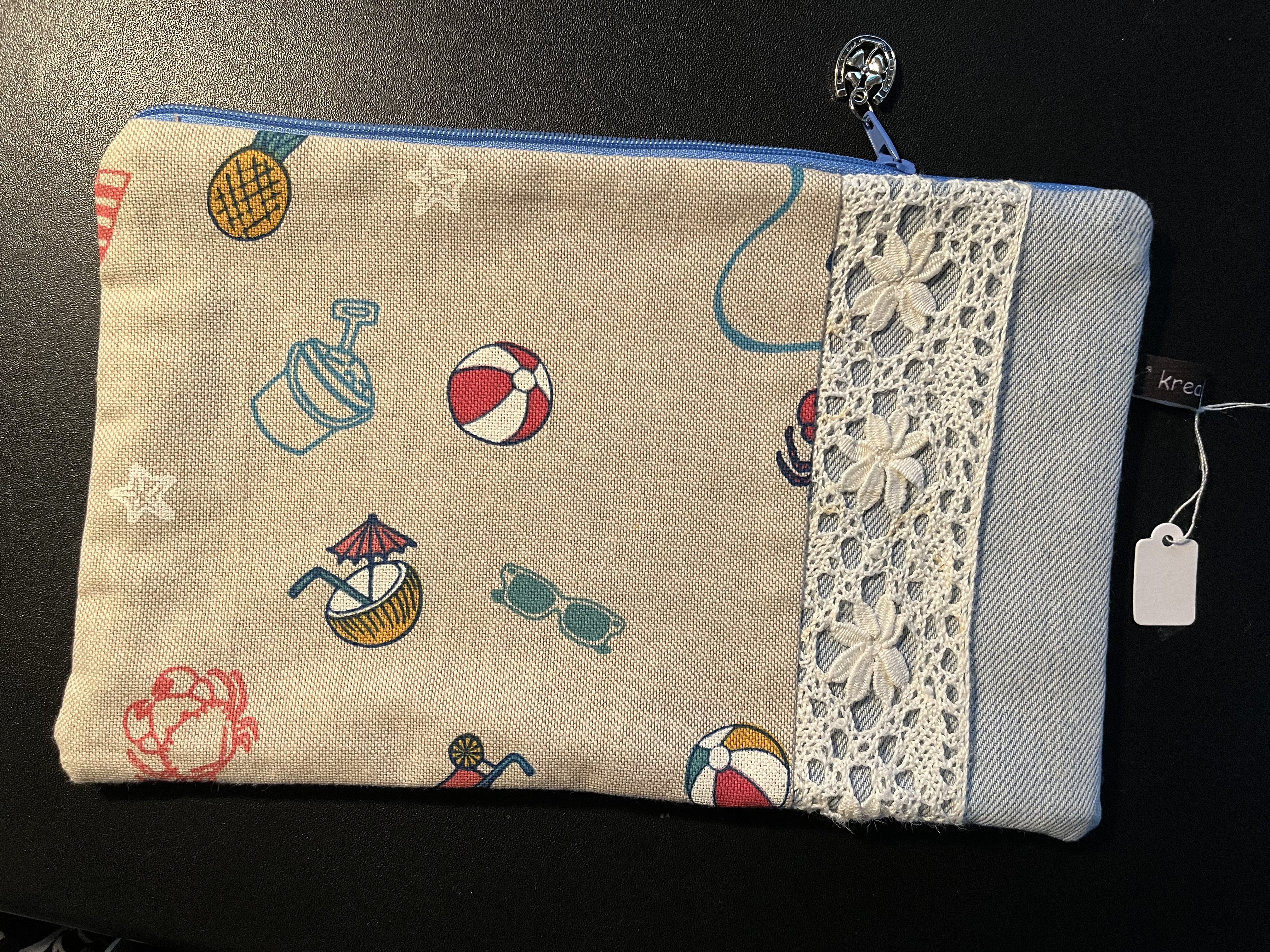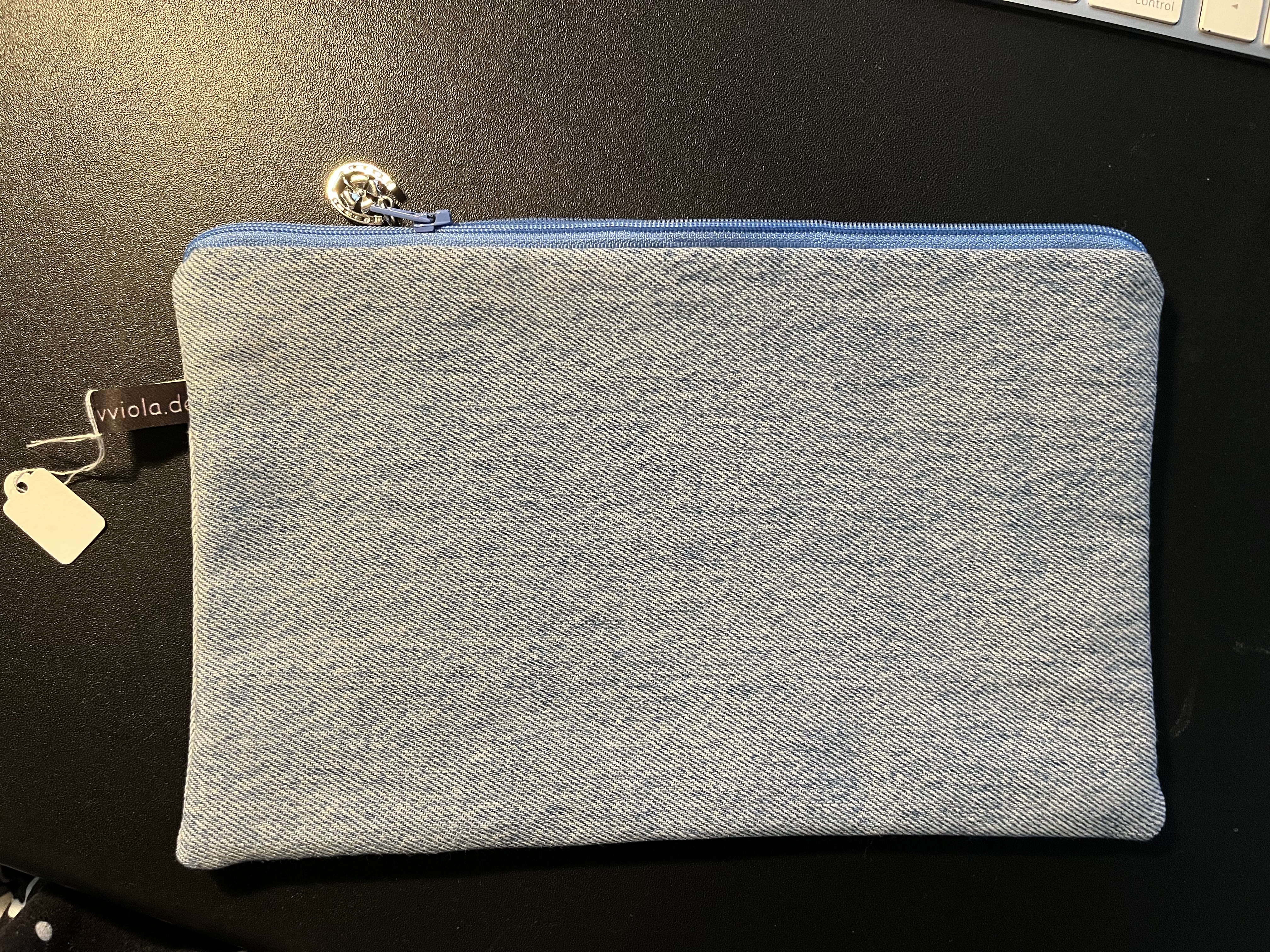 Preview: Kosmetiktasche Jeansreste (blau Hufeisen)