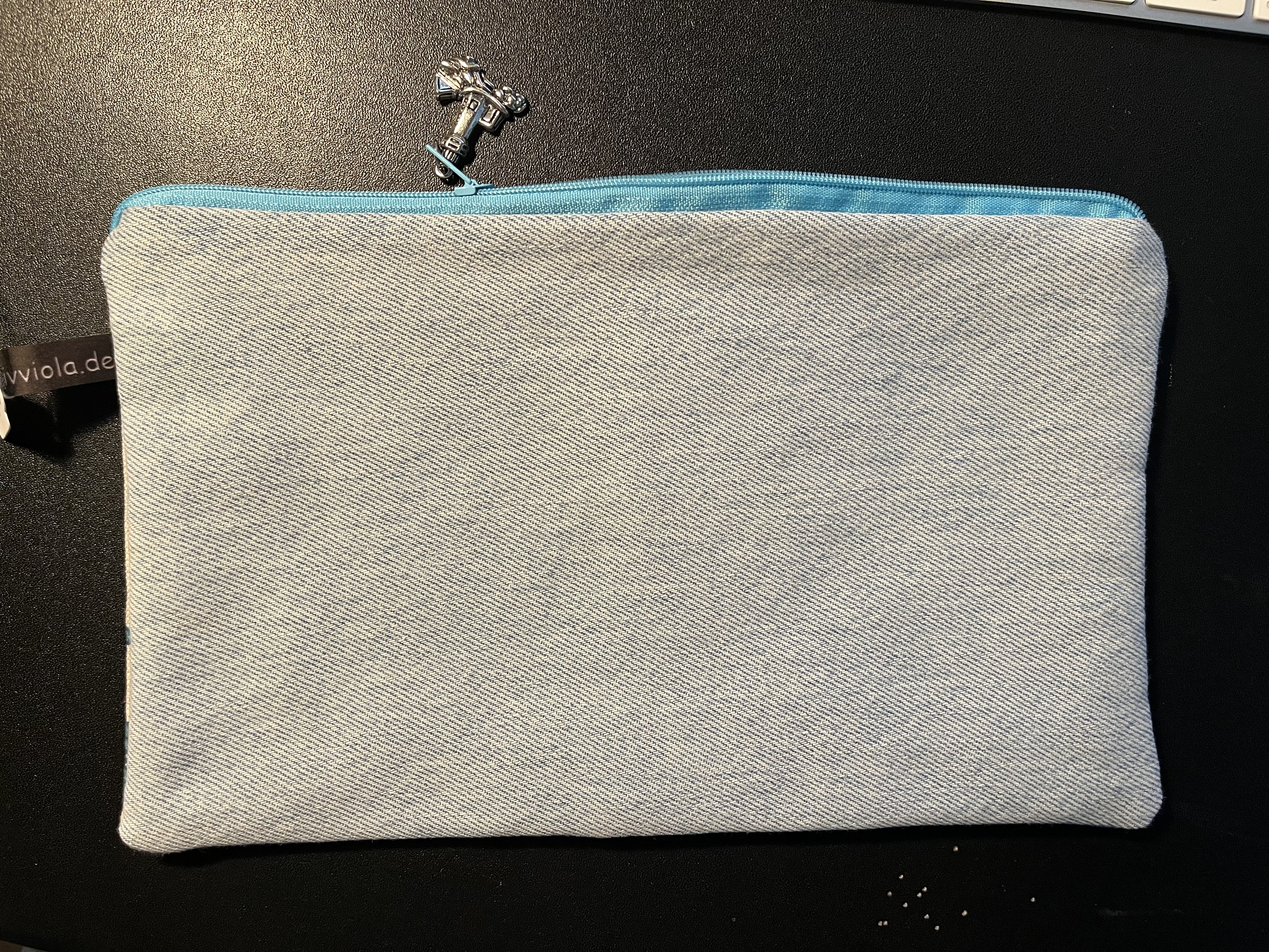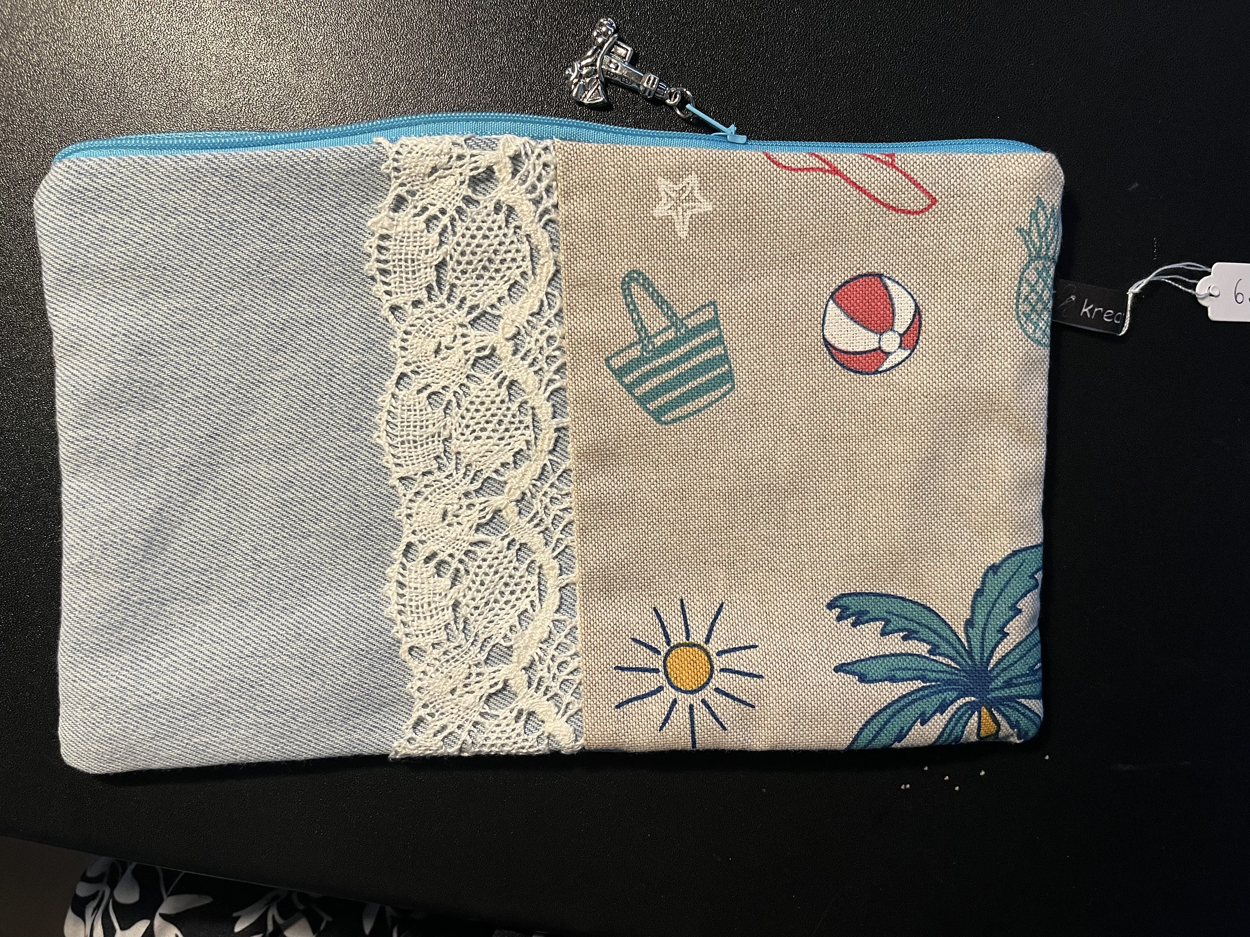 Aus Jeansresten verbunden mit gehäkelter Spitze und weiteren Stoffresten