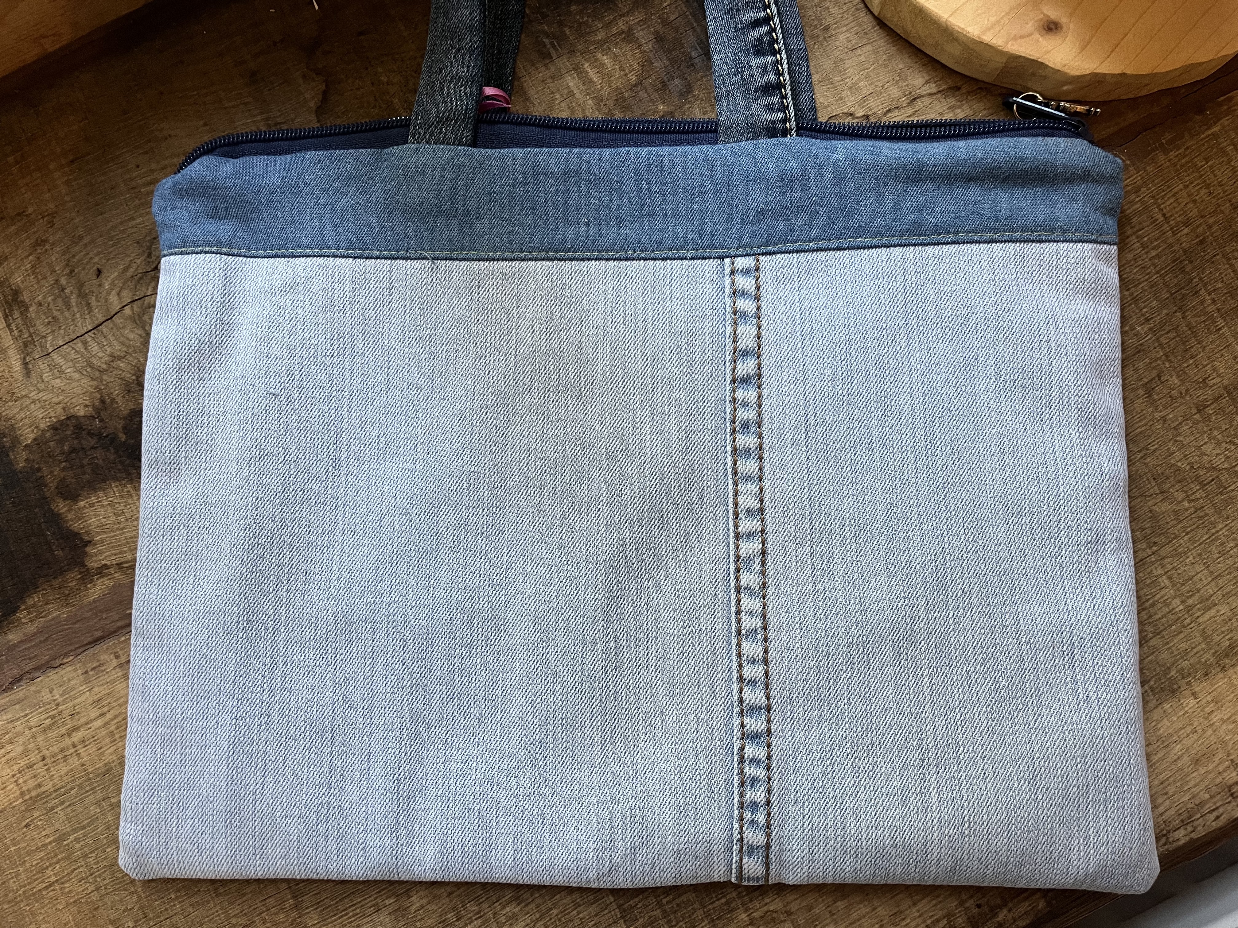 Hier habe ich aus Jeansresten Laptoptaschen genäht.