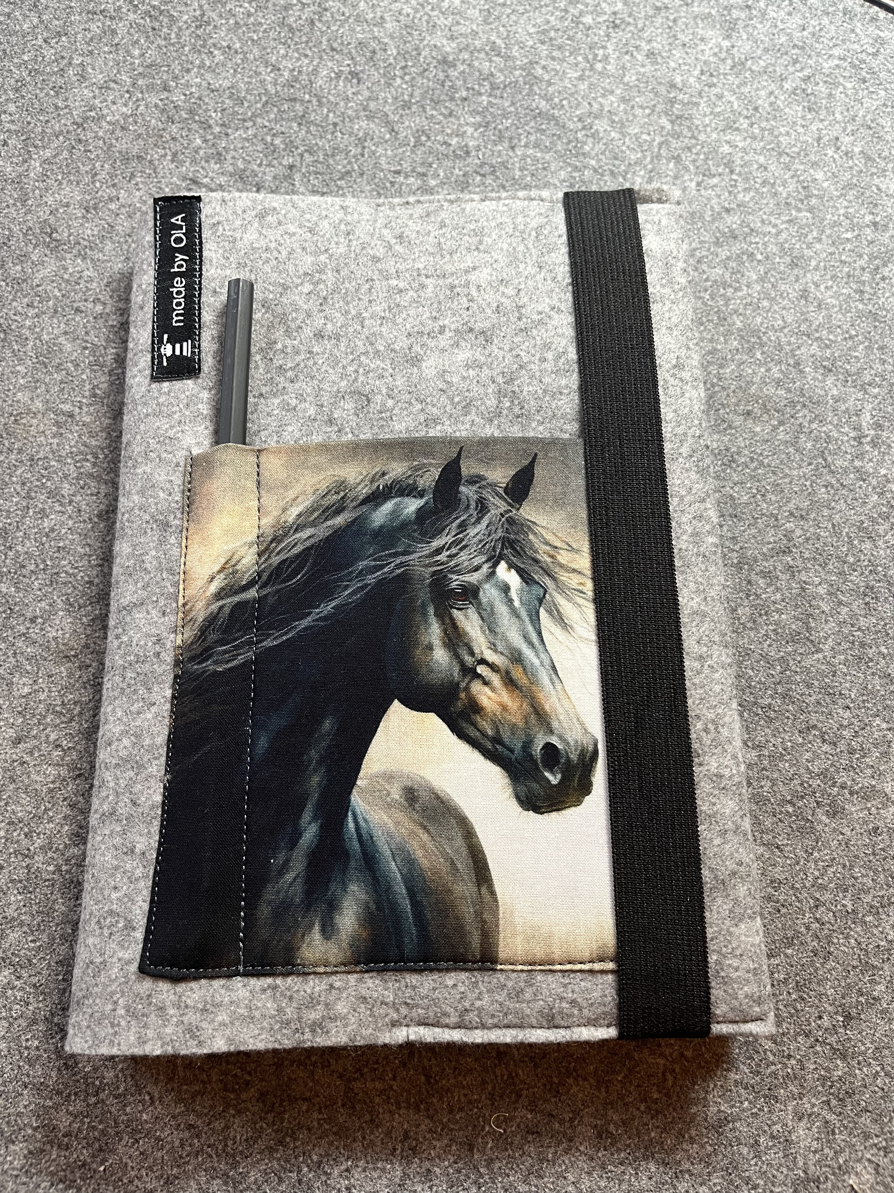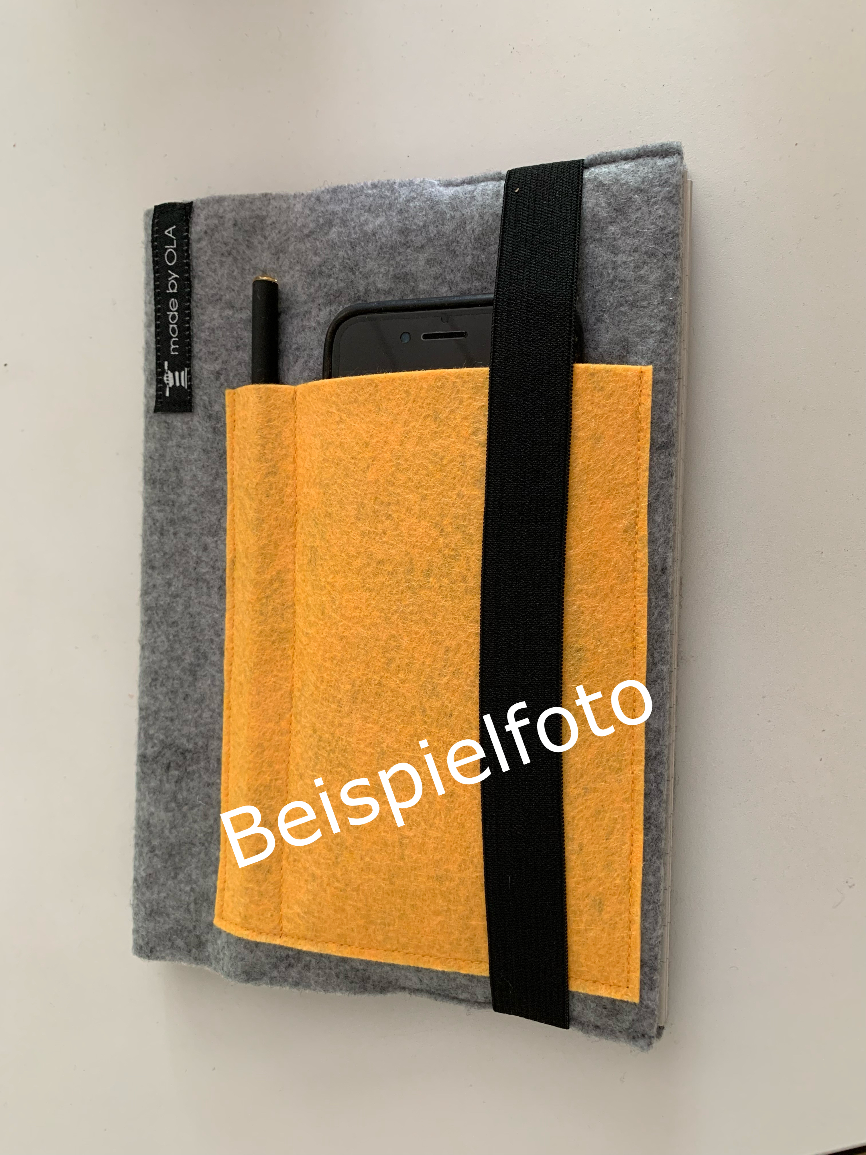 In einem Bürohandel habe ich diese „alten“ Notizbücher mit Spiralbindung gefunden. Aus Industriefilz habe ich die Buchhüllen genäht.