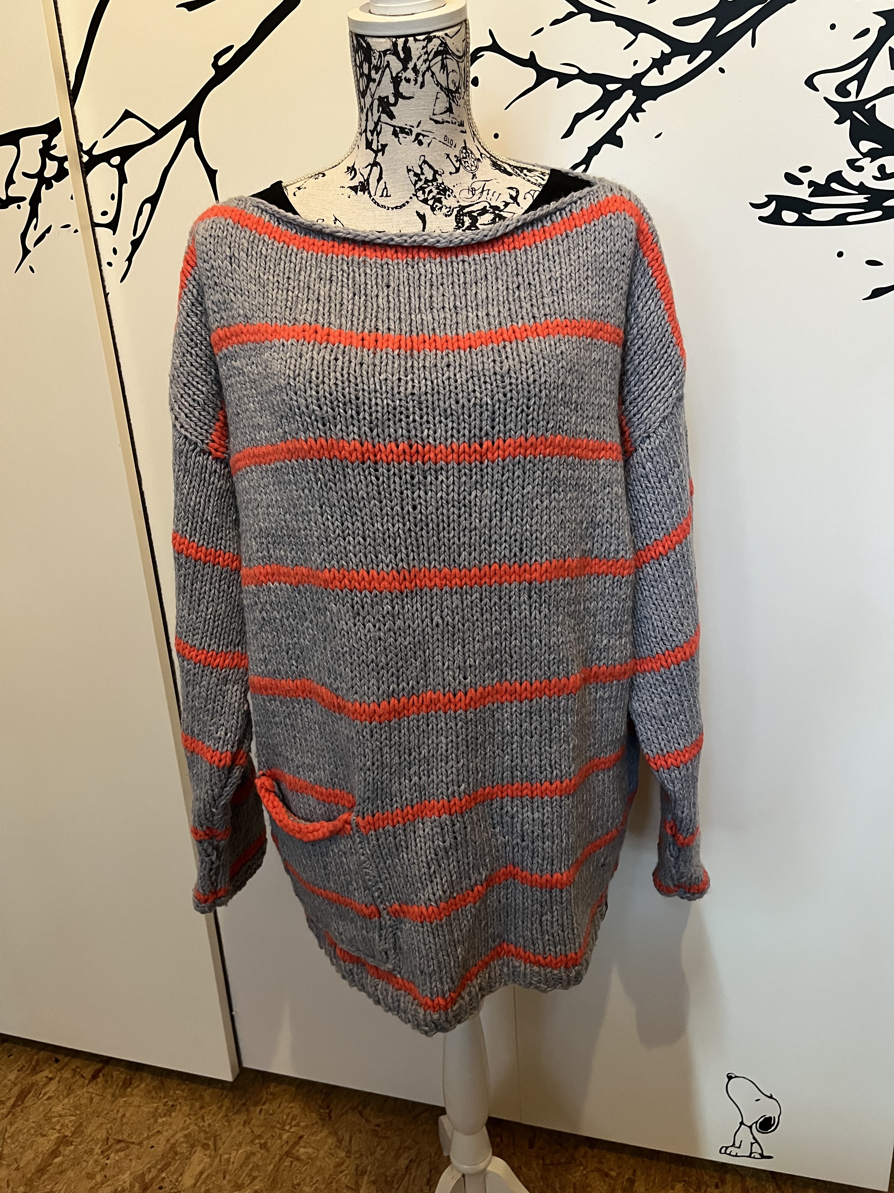 Hier habe ich schöne weiche Wolle günstig bekommen, daraus habe ich einen schönen warmen Longpullover gestrickt. Ich würde sagen der passt am besten bei Gr. 44- 46