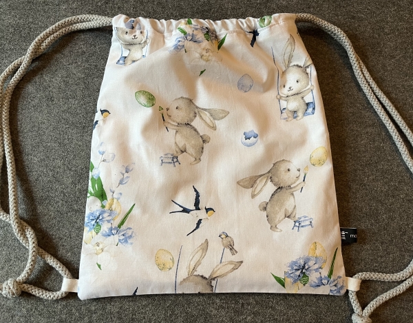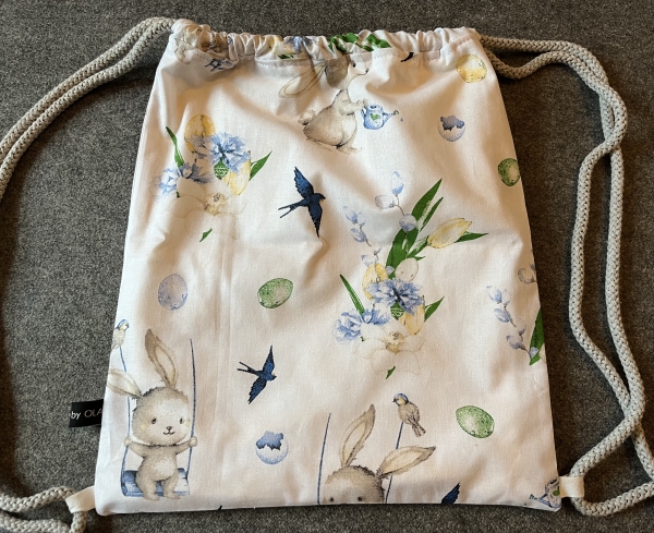 Hier habe ich "Kinderstoffreste" geschenkt bekommen, daraus habe ich einen Kinderrucksack oder Turnbeutel für Kinder für die Kita genäht. Jeder Rucksack hat ein Innenfutter.