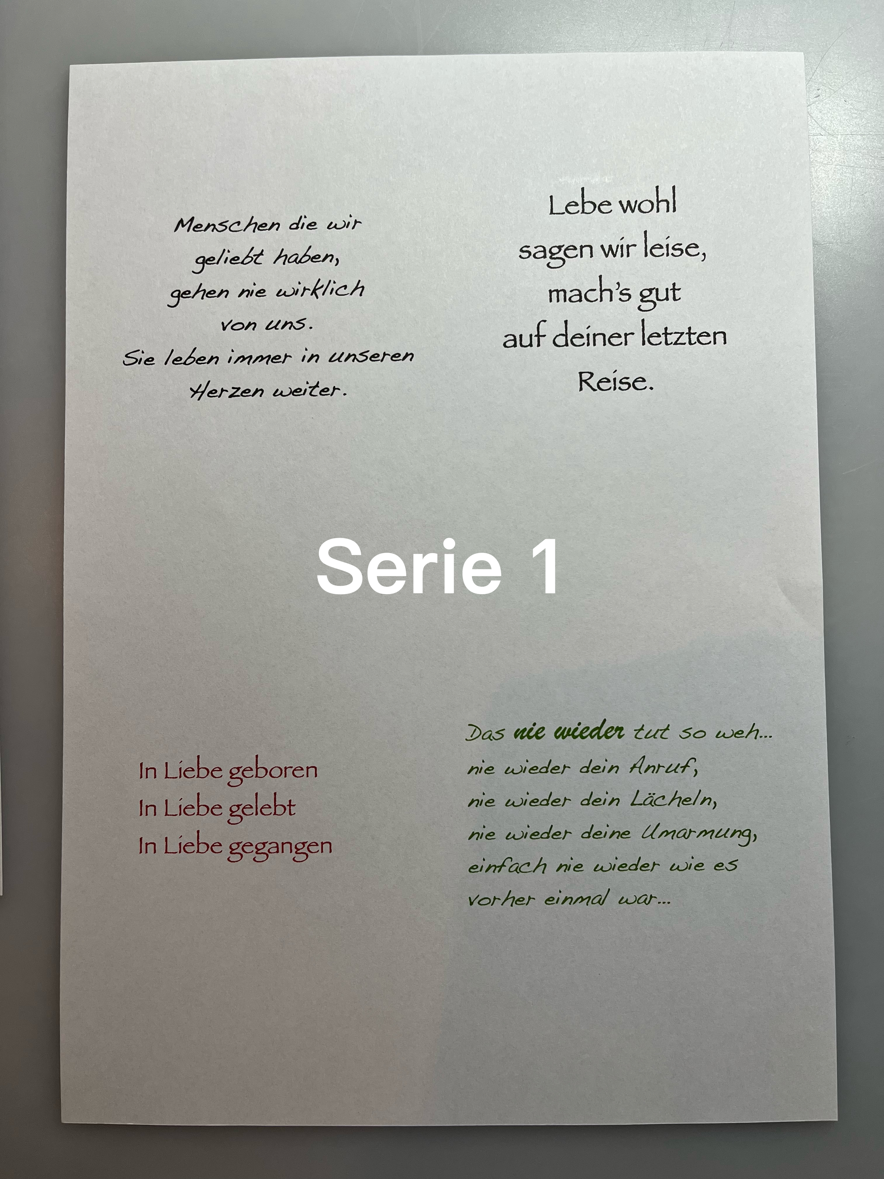 Jedes Set besteht aus 4 Karten mit 4 verschiedenen Sprüchen.